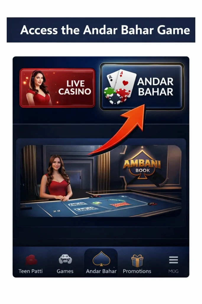 To begin playing Andar Bahar on Ambani Book, players must first log in using their registered account details. New users are required to complete a quick registration process before accessing the live casino games. Once logged in, the platform allows smooth navigation across all game sections.